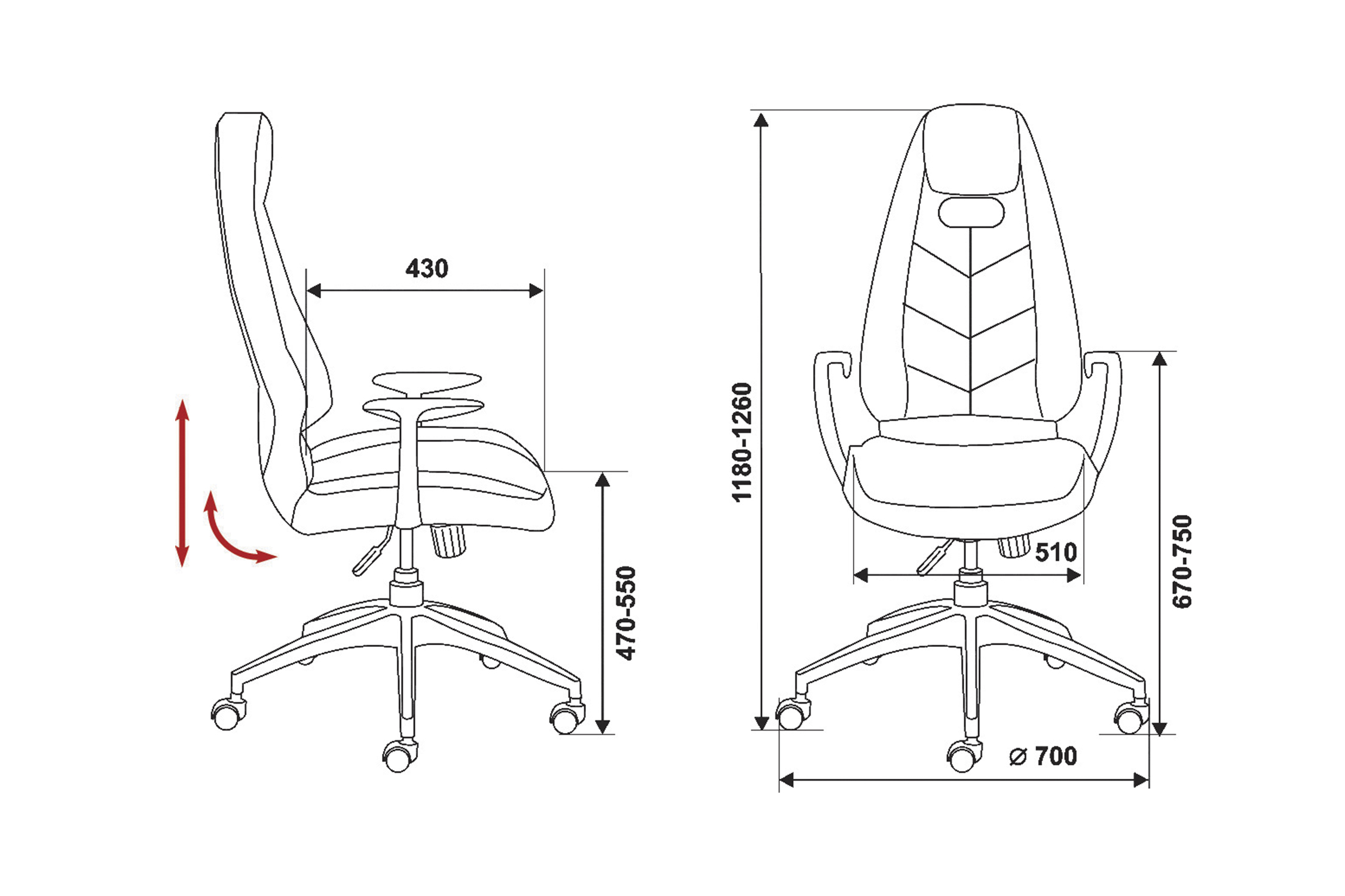 Диаметр колес - 6 см. Высота сиденья - 55 см. Высота с подлокотниками - 75 см. Ширина сиденья - 51 см. Глубина сиденья - 43 см. Материал колес - с накладкой PU. Синхромеханизм качания с регулировкой под вес и фиксацией в нескольких положениях. Подлокотники металлические (полированный алюминий) с мягкими кожаными накладками. Крестовина металлическая (полированный алюминий) |
